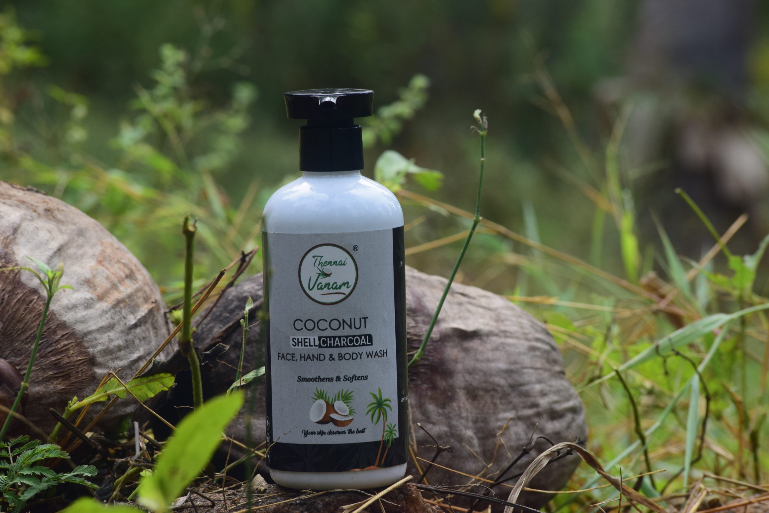 Crafted for those who seek indulgence in purity, Our Coconut shell  Charcoal Body Wash offers a detoxifying experience rooted in tradition and elevated by modern elegance. Infused with coconut shell charcoal  and rare botanicals, this luxurious cleanser draws out impurities while nourishing the skin with moisture-rich oils. Its gentle yet powerful formulation not only soothes irritation but also refines texture, revealing a luminous, even-toned complexion. A sensorial ritual of clarity and calm—refined for daily indulgence.